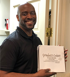 Assistant Branch Manager, William, enjoying sweets from Grandma’s Cookies.